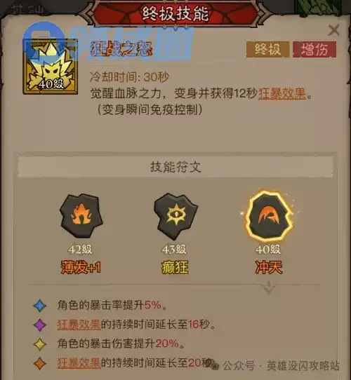 终极技:蛮力穿刺——蛮劲/蛮力穿刺——涌动/狂战之怒——冲天