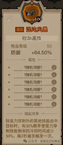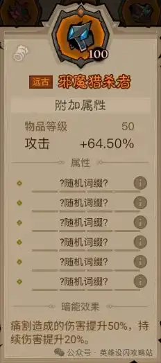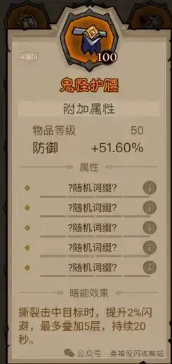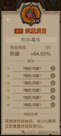 护肩:伏魔肩胄(远古暗能开始掉落,可考虑用死士护肩或愤怒之刺替代,用愤怒之刺替代时可考虑将护手更换为统治者臂甲)