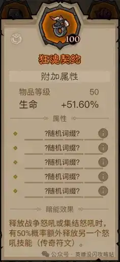 思路:远古蛮灵之力提供终极技能冷却缩减,结合暗能可以使狂战之怒全程持续,也可以使蛮力穿刺技能更快释放从而触发原罪六件套效果;庇护之力与灵巧步伐提供减伤与闪避,提高生存,若生存压力不高可以根据当前暗能秘籍/关卡配置情况自行更换