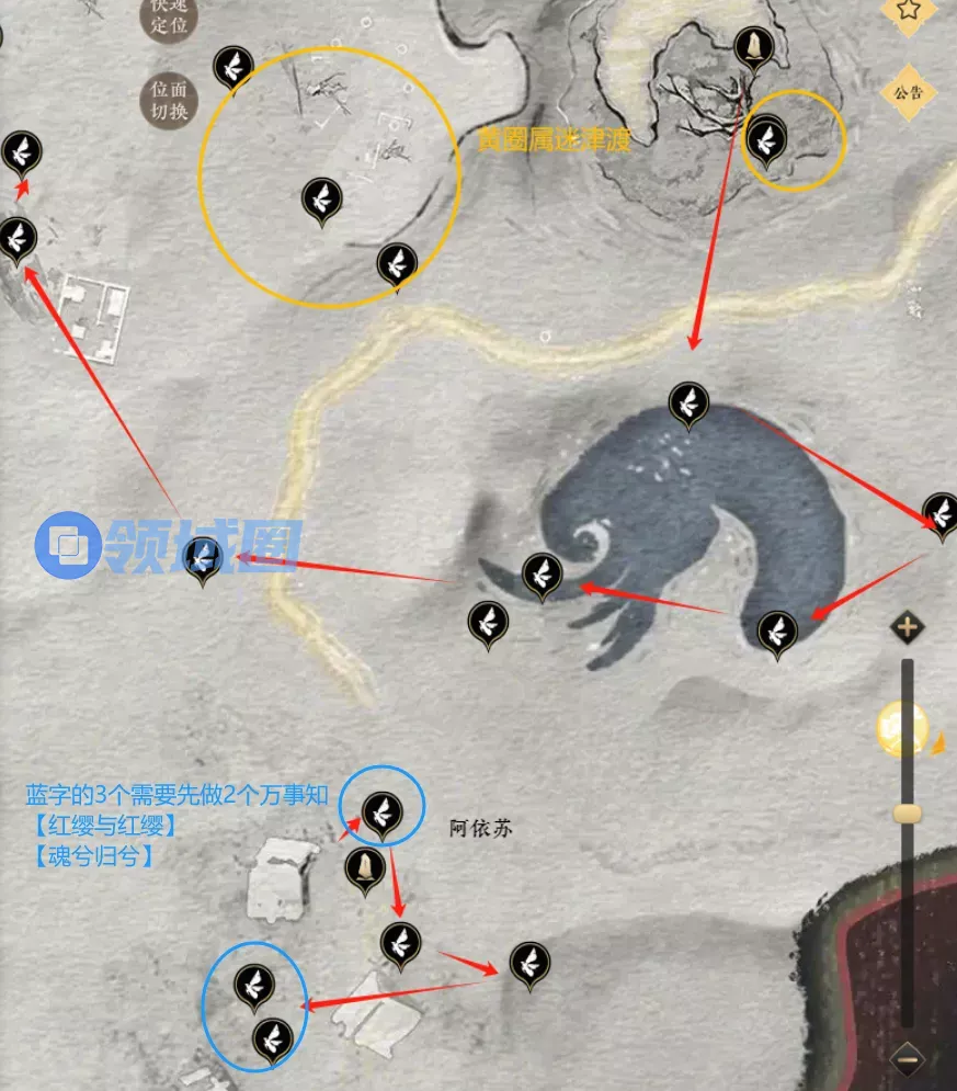 燕云十六声寻找蹊跷时直接打开武林录→众生,选对应河西/清河/开封地区可以直接查看蹊跷/宝箱/妙妙喵的收集情况。然后直接传送到该地区界碑,随便跑两下就能看到小地图出现蹊跷提示(飞虫标志),这样找蹊跷更方便。