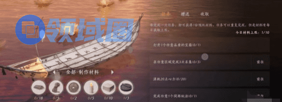每日系统会提供四个任务,完成这些任务即可获得最多10个活动材料。