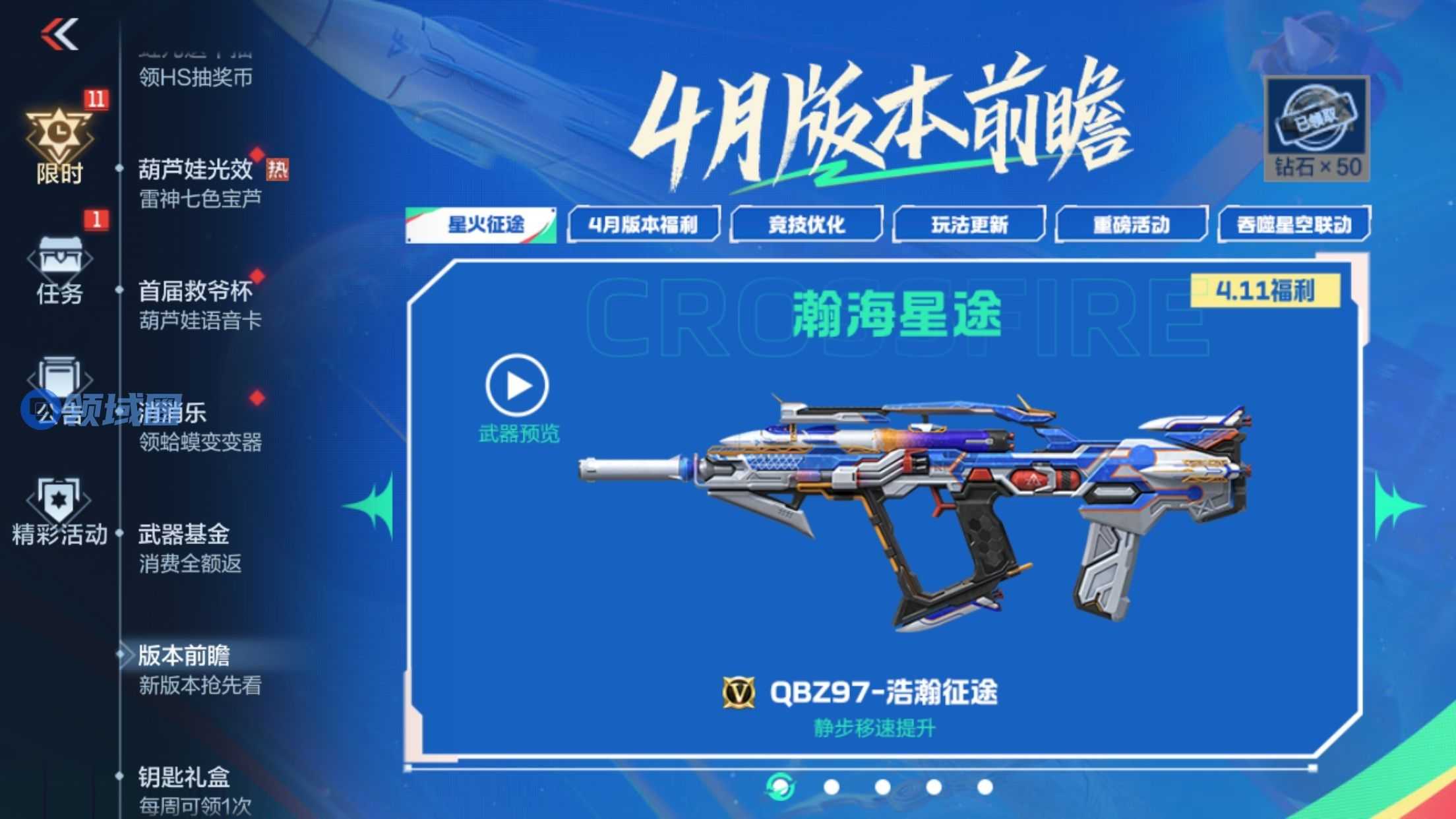 第5轮抽奖将在5.1日开启,届时即可开放获取QBZ97-浩瀚征途,这把武器也是首次出现永久的获取渠道,另外还可以获得浩瀚征途聊天气泡*1以及机械迷城宝箱*1,宇航之秘觉醒宝箱*2,50钻石。