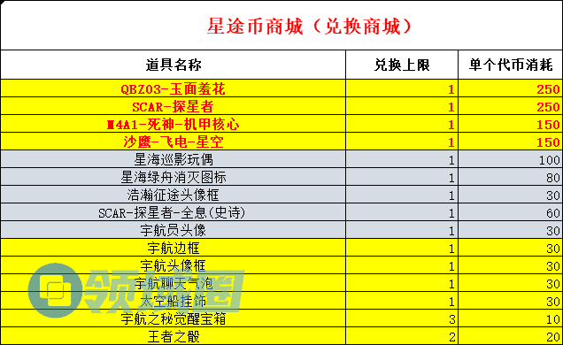 这些兑换道具中最高的需要250枚星途币兑换,小伙伴们一定要规划好星途币的使用哦!不要因为兑换某些道具导致自己没有足够的星途币兑换这几件非常稀有的道具,最后不要忘了掌上穿越火线积分商城也将上架10枚星途币为大家加油助威!