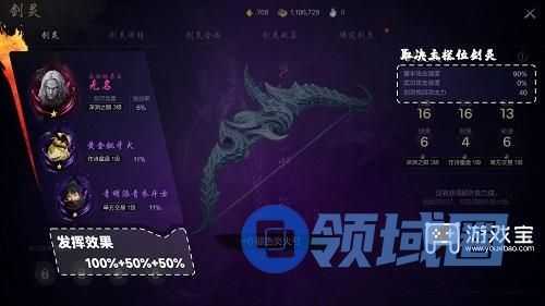 剑灵的能力值由1个主剑灵与2个辅剑灵的能力值相加得到的,其中主剑灵可以发挥100%,副剑灵只能各发挥50%的能力值。