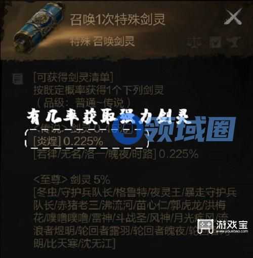最后介绍下游戏中怎么抽取剑灵,召唤剑灵要消耗剑灵召唤卷(不同的召唤消耗不同的召唤卷)