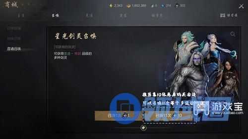 点击商城中的召唤就可以看到抽取剑灵的地方了,像星光剑灵召唤卷就是属于普通召唤。其中分为日常、特殊和普通召唤。日常和普通召唤出的剑灵都一样,只不过日常出好剑灵几率更大,而且需要花费神石。特殊召唤也是消耗神石但是有几率获取特殊的强力剑灵(另外两个抽不到)