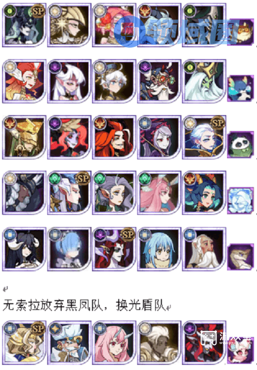 4队,棋神门槛303-60,没有的话则去掉大辫子,夏提雅和尤金去黑凤队,双子去骨王队补缺,秋婶和音魔去光盾队补缺;