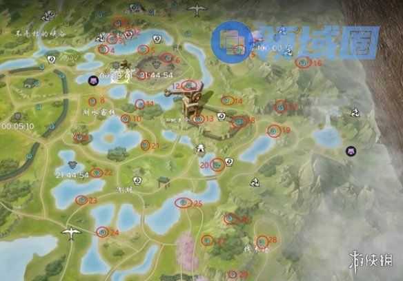 2、位置:主要集中在浅湖(下)的湖边、小岛和周边的树林中,注意查看地图上的标记。
