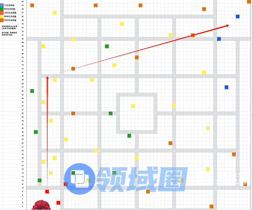 2、路线可以先向上走,之后到达纵向坐标40的时候就可以开始往右上角开始挂机砍树;