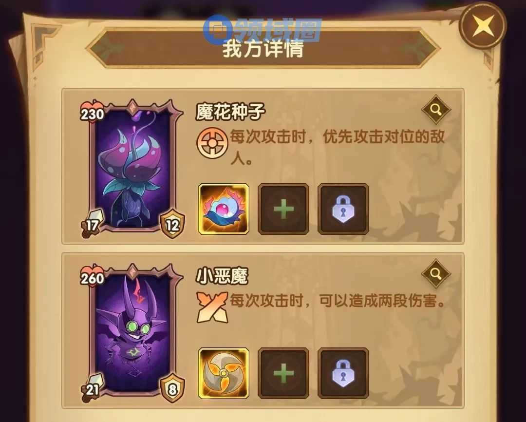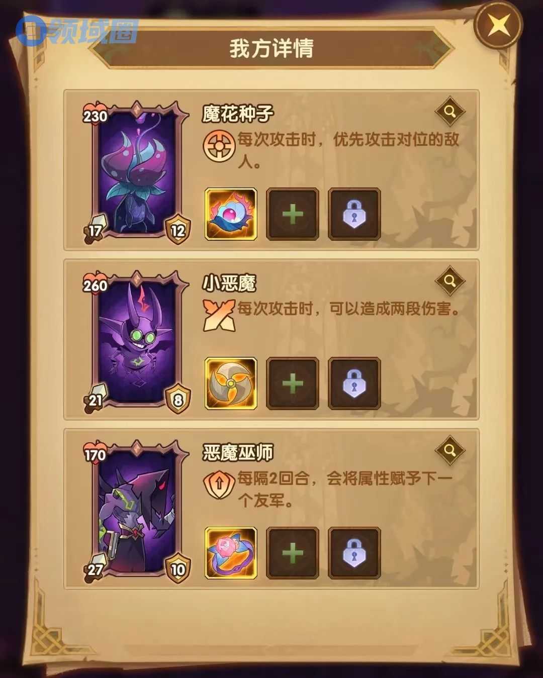 魔花种子1号位 恶魔巫师2号位 小恶魔3号位