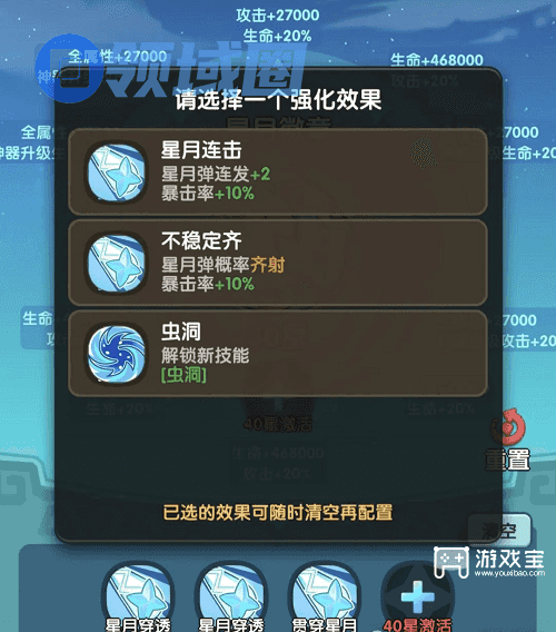 ①月神:优先加强必杀技,如引力空间系列(提高伤害上限),后续出现空间坍缩、黑洞效应等技能时优先选择。避免点月神的天赋(尤其是雷风电相关的3个)。