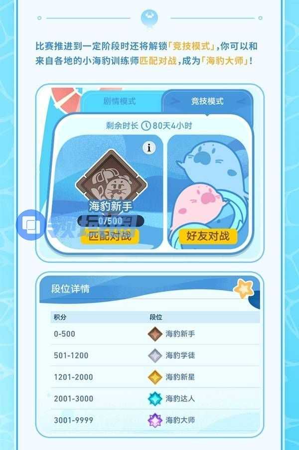 ● 比赛推进至一定程度后,将解锁「竞技模式」,开拓者可在此模式中与世界各地的神秘海豹训练师进行对战并提升段位。