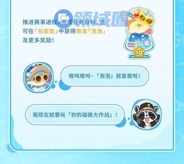 ● 完成剧情模式比赛、提升狂欢等级,可在「兑奖处」中获取包含随宠「泡泡」在内的各类常驻奖励。