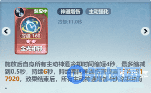 配合元宝减冷却回能量,使核心神通一直不间断释放,元宝越高星释放的越流畅。金光却邪戴上了元宝可以让技能多放一套,这也是为什么配合元宝能伤害高的原因。但没有元宝的话,就不推荐这个神通了,发挥不出作用。