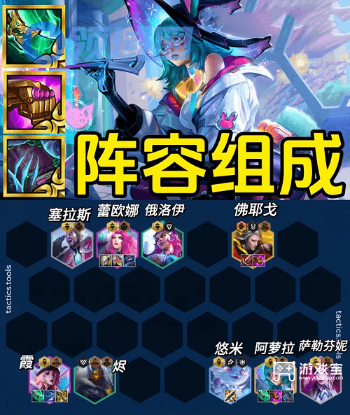 阵容组成:塞拉斯、蕾欧娜、俄洛伊、佛耶戈、霞、烬、悠米、阿萝拉、萨勒芬妮。