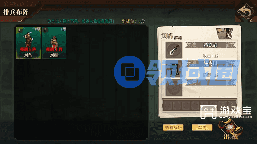 2、在对话完成,并回屋子休息后。即可进入初次的战斗演练阶段。选择武将出战,可以选择自由探索以及战斗指挥便于快速上手!