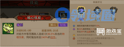 核心技能上面选择痛割!痛割是此流派的核心,会施加240%攻击倍率的创伤!符文选择炎刃!提升痛割技能的暴击倍率!并且增加角色的持续伤害!并且最终技能在暴击时可以施加双倍的创伤效果!是此流派的核心输出技能!