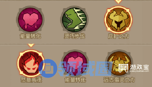 被动技能选择上面,如果自身站不住的话可以偏向防守类的被动,能量转化、灵巧步伐、庇护之力!毕竟只有站得住才有输出,站不住的话万事皆休!如果能站住的话,那么可以选择增加输出的,怒意高涨、能量转化、远古蛮灵之力!进一步加强流派输出能力!