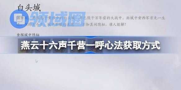 燕云十六声千营一呼心法如何获取 千营一呼心法怎么获取