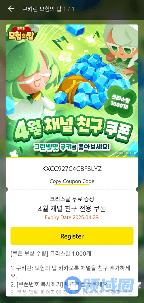 4、该兑换码需要玩家自行安装KaokaoTalk应用,并注册账号完成下述步骤才可获取兑换码