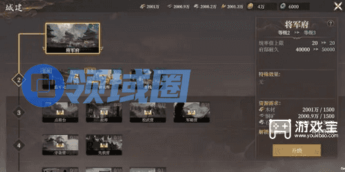 - 将军府等级提升:先通过新手引导完成任务,迅速把将军府等级提升至五级,把将军府二级时可解锁客栈(可进行武将等级置换)和五级时解锁的练兵所(编队中武将能获取经验)和千户所(兵种等级提升为二级)给建造出来。