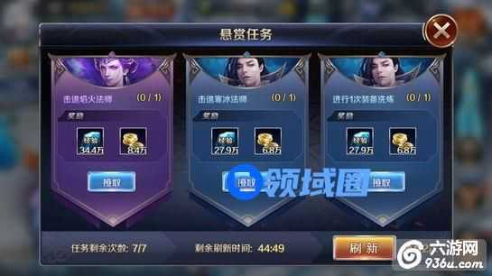 洗炼装备—洗炼装备达到指定次数后可完成悬赏,并领取对应的悬赏奖励