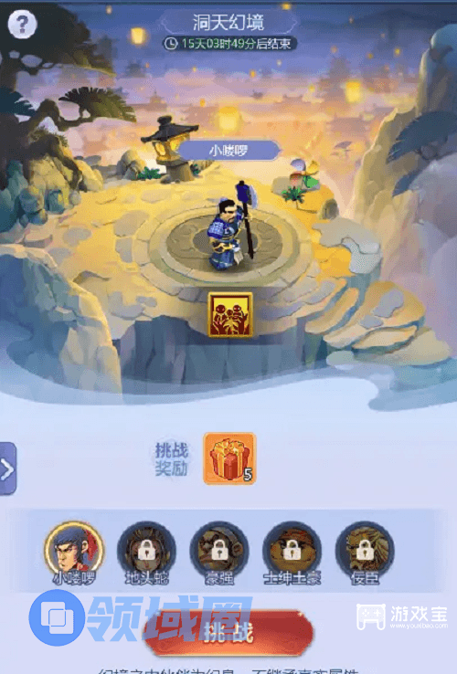 洞天幻境之中,共有5个幻境关卡,完成一个幻境关卡即可获得对应奖励并可挑战下一关卡;