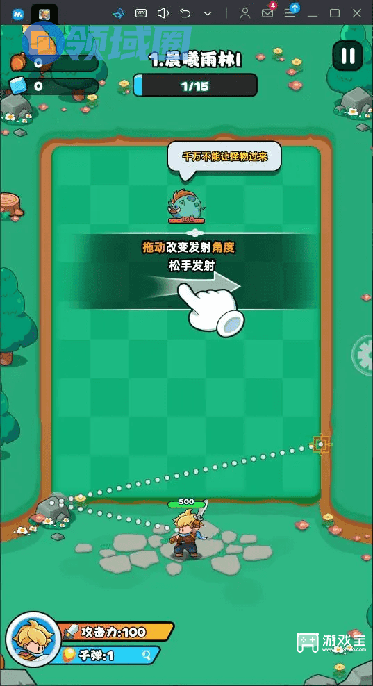 1、长按拖动调整弹道,松手即可发射(注意力度条控制)
