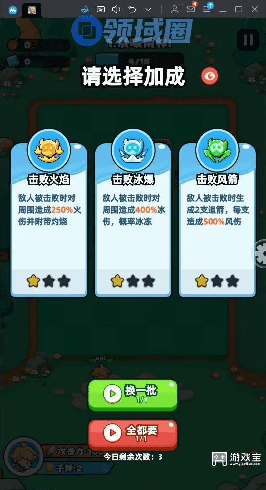 2、"全都要"技能建议留到中后期使用,加成收益更高;