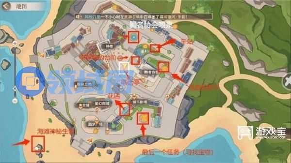 1、海滩神秘生物:在星乐小镇的圆梦广场,直走进入海滩范围后,向右即可找到。