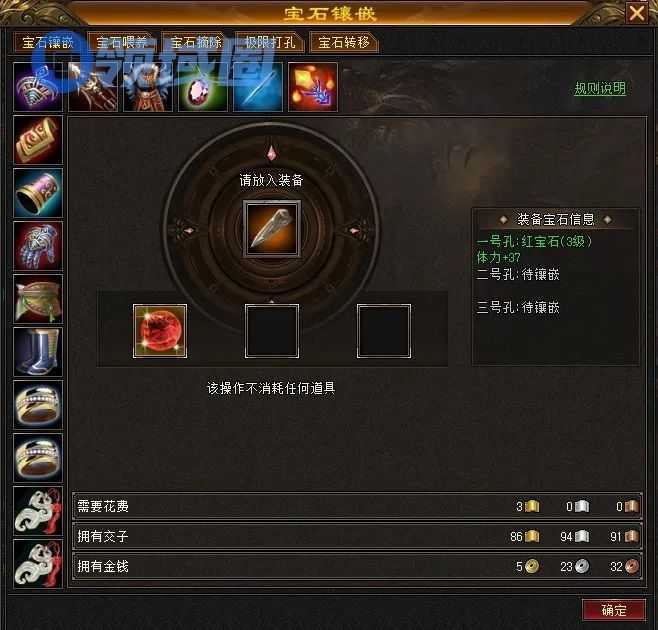 所有装备带3孔,一键转移无损耗,更无需额外打孔材料、花费,真真正正帮大侠们省资源!