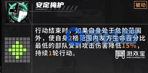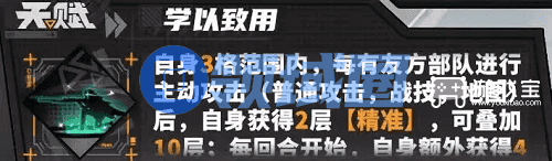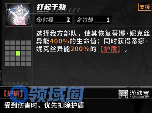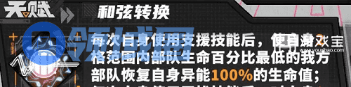 妮克丝的天赋是使用支援技后,使自身两格范围内部队百分比血量最低的我方部队恢复生命