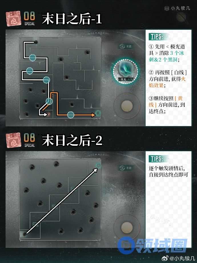 重返未来1999末日与末日之后全关卡攻略,可以帮大家完成所有关卡挑战!我们只需要按下图中的每一关卡完成挑战就可以了!先用极光之道具,消除干扰相对较大的3个黑洞!