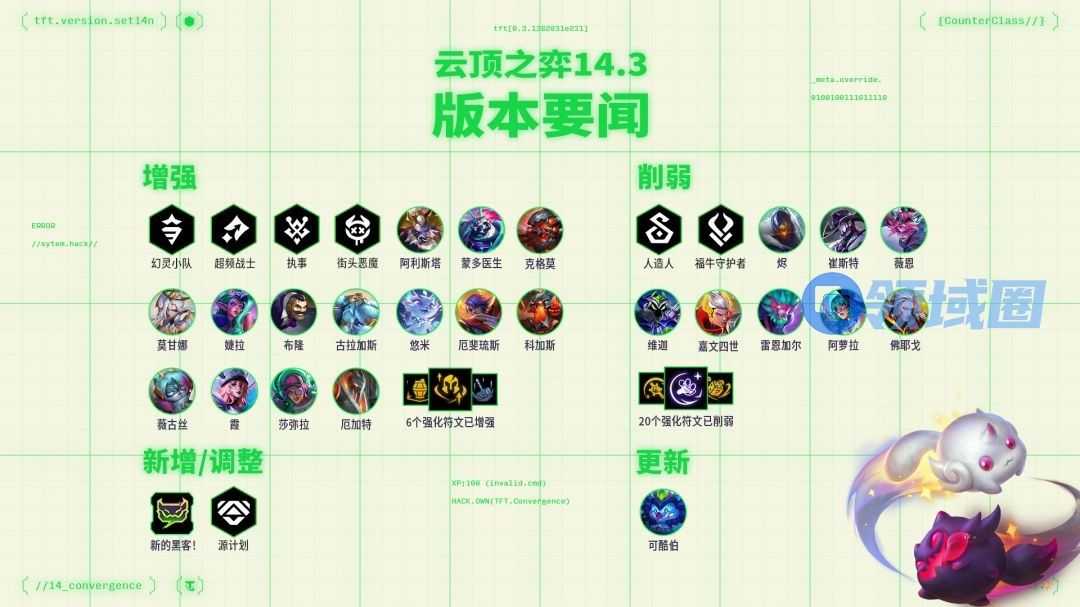 云顶之弈14.3羁绊有哪些改变呢?这次更新的内容还是比较多的,这些改动将对玩家的阵容搭配和策略选择产生显著影响。希望玩家能够根据这些调整,合理规划阵容,提升游戏体验。