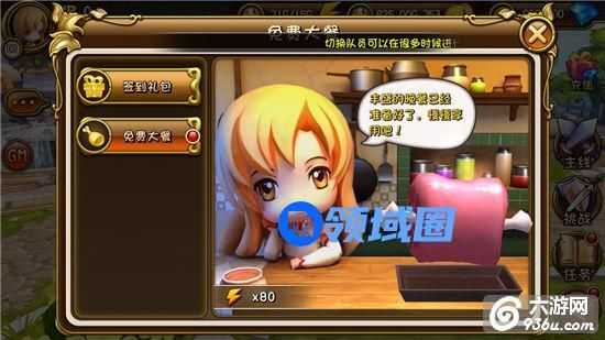 工会厨房,玩家可以自己烹饪美食获得体力,也可以请其他玩家烹饪,如果请其他玩家烹饪,额外增加体力值哦。