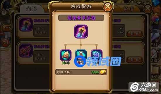 游戏中绿色装备和蓝色装备是可以直接获得,紫色装备有小几率直接获得,那么正常的紫色装备和金色装备就只能通过合成来获得。