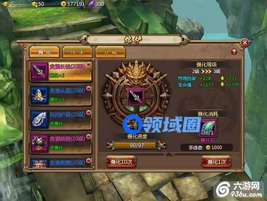 装备强化时,强化石固定可以增加50点装备经验,强化石可在辱楼幻境副本中获取。装备强化获得的加成属性,与装备固有的属性有关,所以前期优先强化武器、衣服、裤子等基础属性值较高的装备部位,装备最高可以强化到20级,在强化时有几率发生2倍、4倍、8倍的暴击!