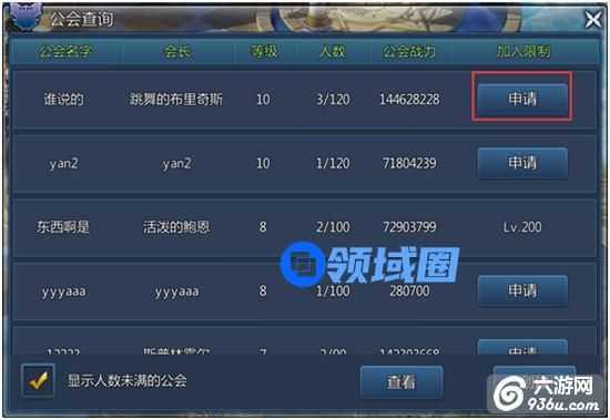 2、加入公会:玩家可以选择自己喜欢且人数没有满的公会进行申请,得到公会长批准后即可加入公会,(哇!公会辣么多,赶紧选择自己喜欢的大腿吧!)