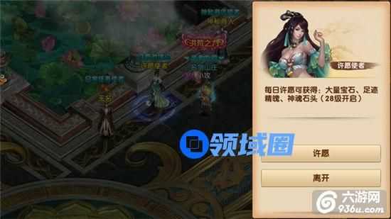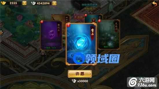 在许愿池,你可以通过支付一定的银两或黄金来许愿,从而获得大量宝石。每天的许愿次数是有限的,随着VIP等级的提升,玩家可以许愿的最高次数也就越多,加油提高你的VIP 等级吧!此外,就算一时缺乏黄金,也可以来许愿的,头两次许愿都不需要黄金,有银两就可以进行许愿,从而获得大量宝石啦!