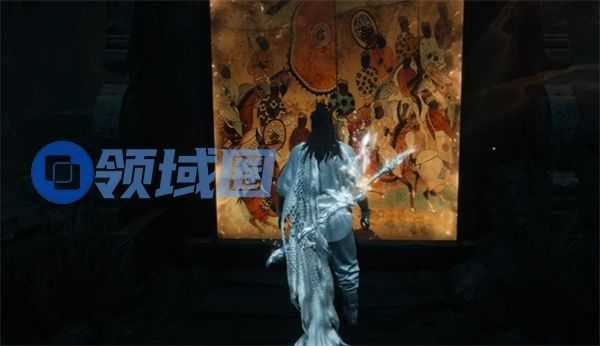 进入壁画空间后,调查前方的军旗,触发后续事件。