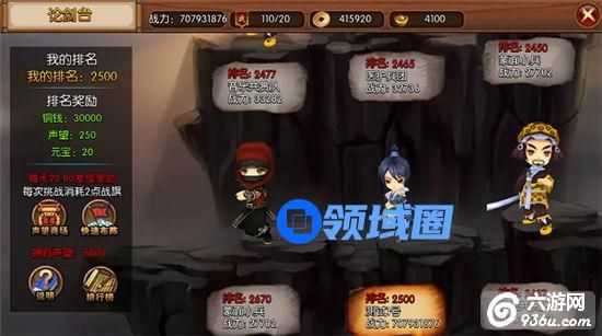 别人的失败就是我的成功!在论剑台使用战旗点数和其它玩家比拼战力,排名越高每日结算奖励也越大。