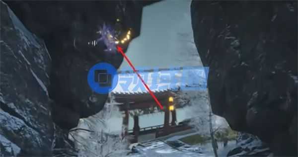 凉亭附近的断柱下方区域,靠近后抬头可见蹊跷,直接跳取。