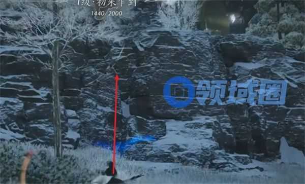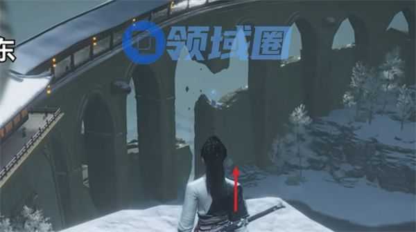 从断柱处按箭头方向上石头,高处平台抬头即见第四个蹊跷。