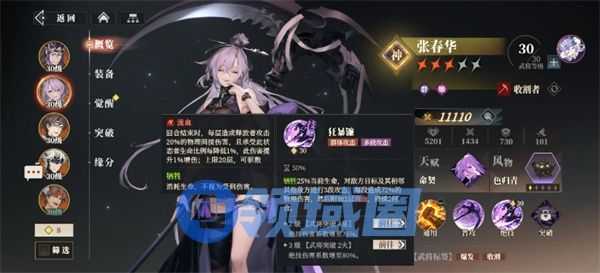 特别提示:张春华的绝技以“生命换伤害”为代价,适当搭配保命属性可以延长她的输出周期。