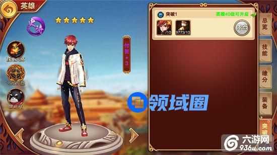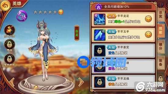 游戏中提供了升级、升星、进化、突破、缘分、技能6种方式提高英雄的实力。并且可以通过镶嵌罗盘宝石,宠物护佑来进一步提高英雄的实力。