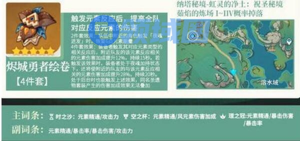 4件套:扩散反应伤害提升60%;依据扩散的元素类型,降低敌人40%的对应元素抗性,持续10秒