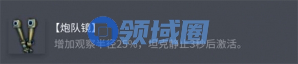 3、炮队镜:观察半径提高25%,静止3秒后激活,可辅助侦查