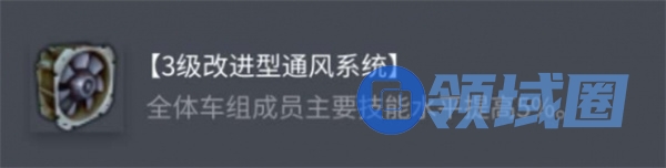 4、3级改进型通风系统:所有乘员主要技能+5%,全方位性能增强