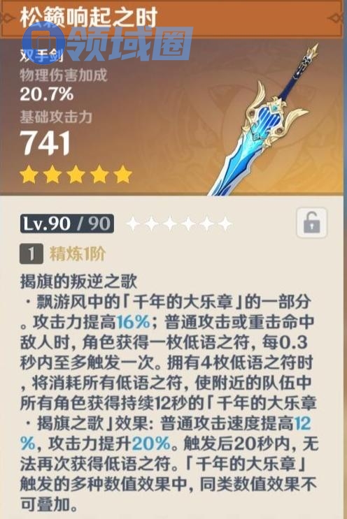 雪山出品物伤大剑,副词条是高贵的物伤加成,单以副词条来看是可以作为松籁下位的存在,且被动也与优菈很般配,可以提高一些优菈的输出伤害。