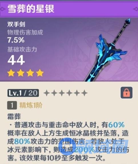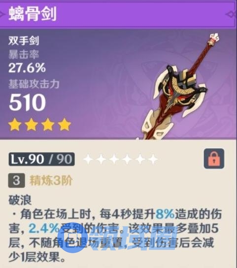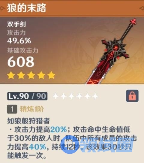 江湖人称“四星狼末”,也是一把纯攻击型加成大剑,获取简单,制作也方便,就是因为是纯攻击加成,对圣遗物暴击/爆伤的需求会很高,前期过渡可以使用。